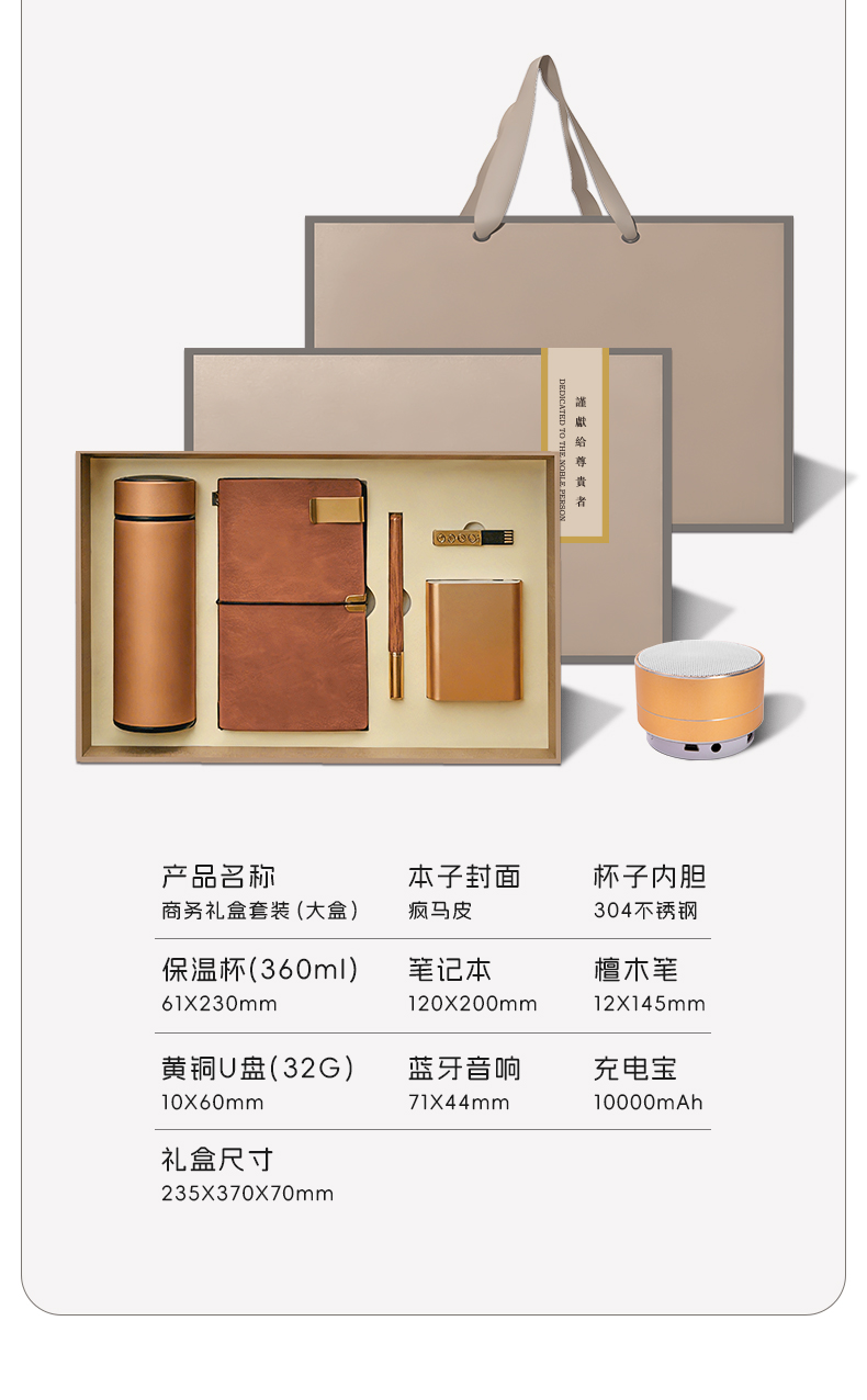 1.注:商城報價對應首張主圖款式! 其他套裝參考細節(jié)圖,費用另計! 2. 咨詢下單請備注好產(chǎn)品信息! 3.首圖款式產(chǎn)品明細:保溫杯+檀木筆+筆記本(每款都有三個顏色可選,薔薇紅、沉穩(wěn)灰、香檳棕)
